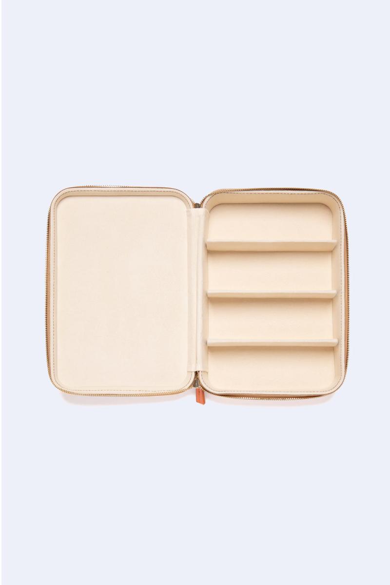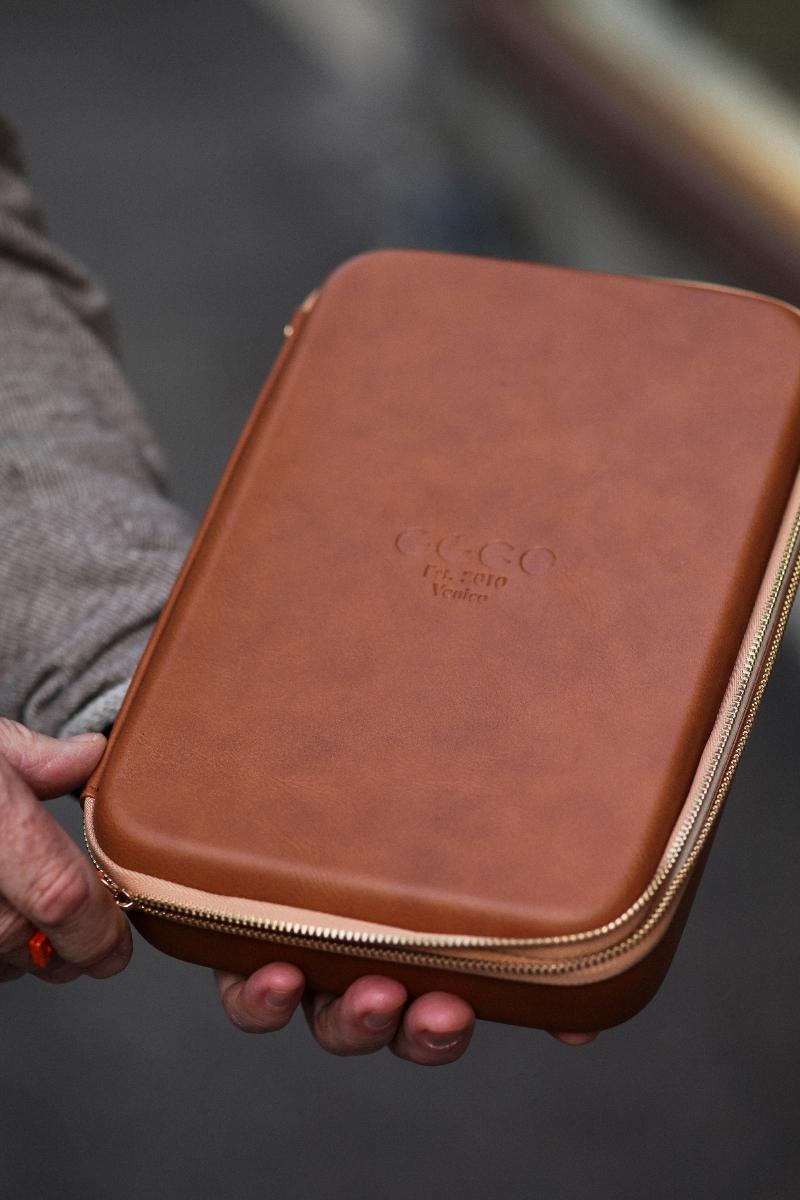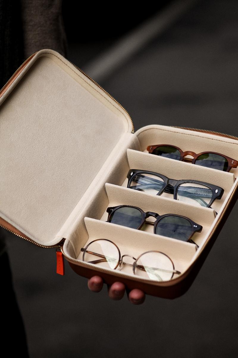 Collectors Case fra Garrett Leight gjør det enkelt å oppbevare brillegarderoben, med plass til opptil fire briller. Den er foret innvendig slik at brillene er beskyttet, og den har en dobbel glidelåslukking som gjør at den også er praktisk å ha med seg på reise.