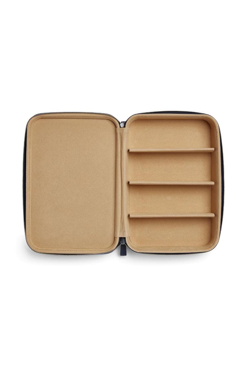 Collectors Case fra Garrett Leight gjør det enkelt å oppbevare brillegarderoben, med plass til opptil fire briller. Den er foret innvendig slik at brillene er beskyttet, og den har en dobbel glidelåslukking som gjør at den også er praktisk å ha med seg på reise.