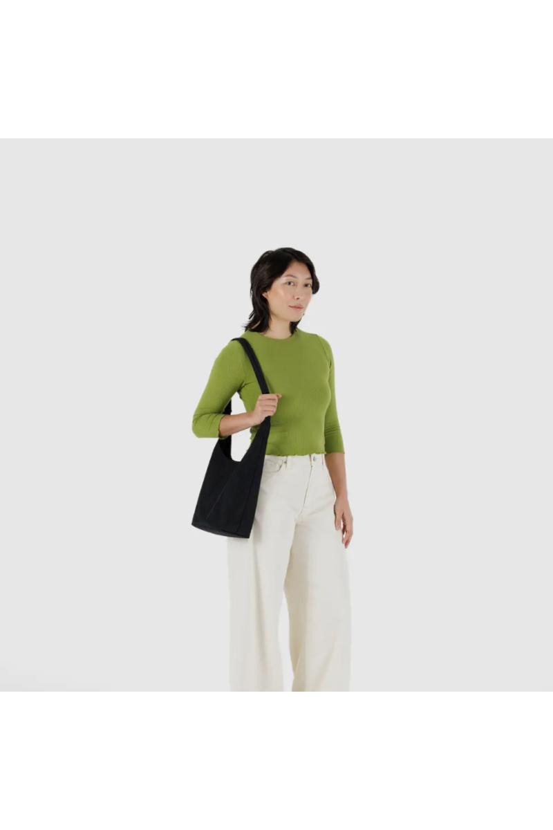 En liten, slank og mykt strukturert nylonveske med justerbar stropp. Vesken har magnetisk lukking, samt en innvendig glidelåslomme.