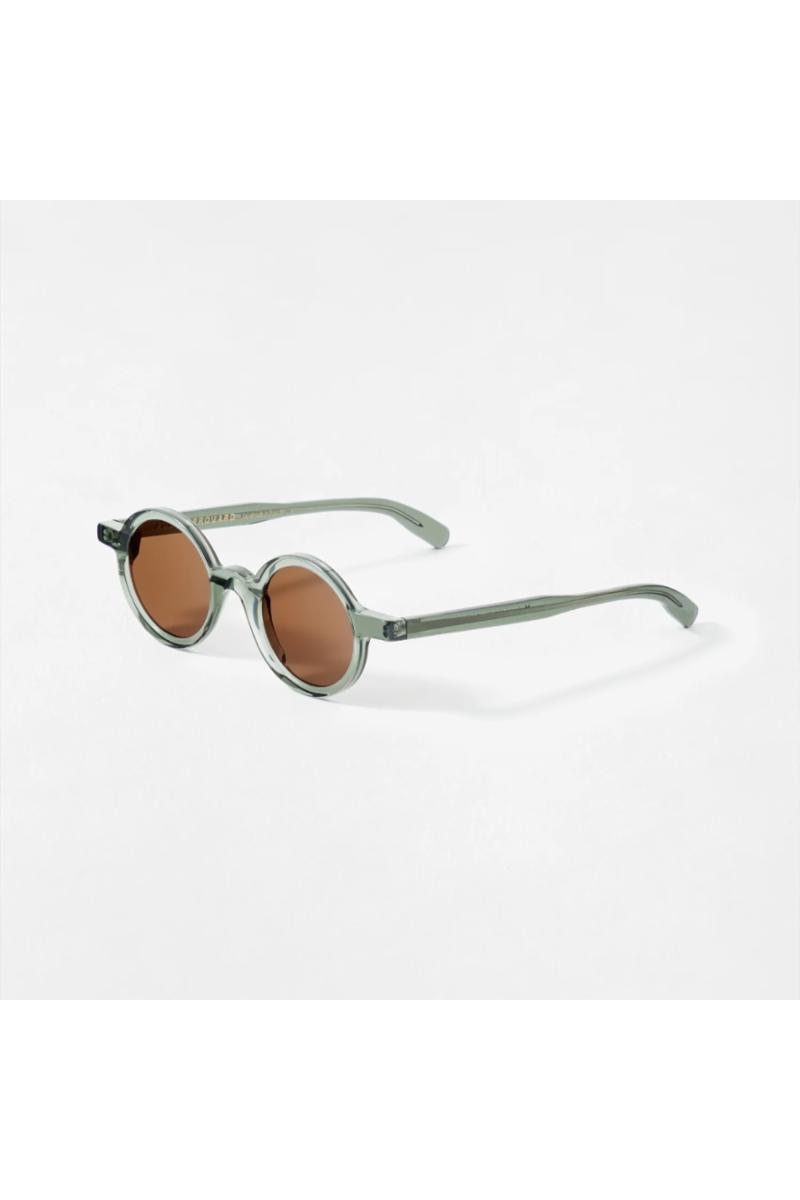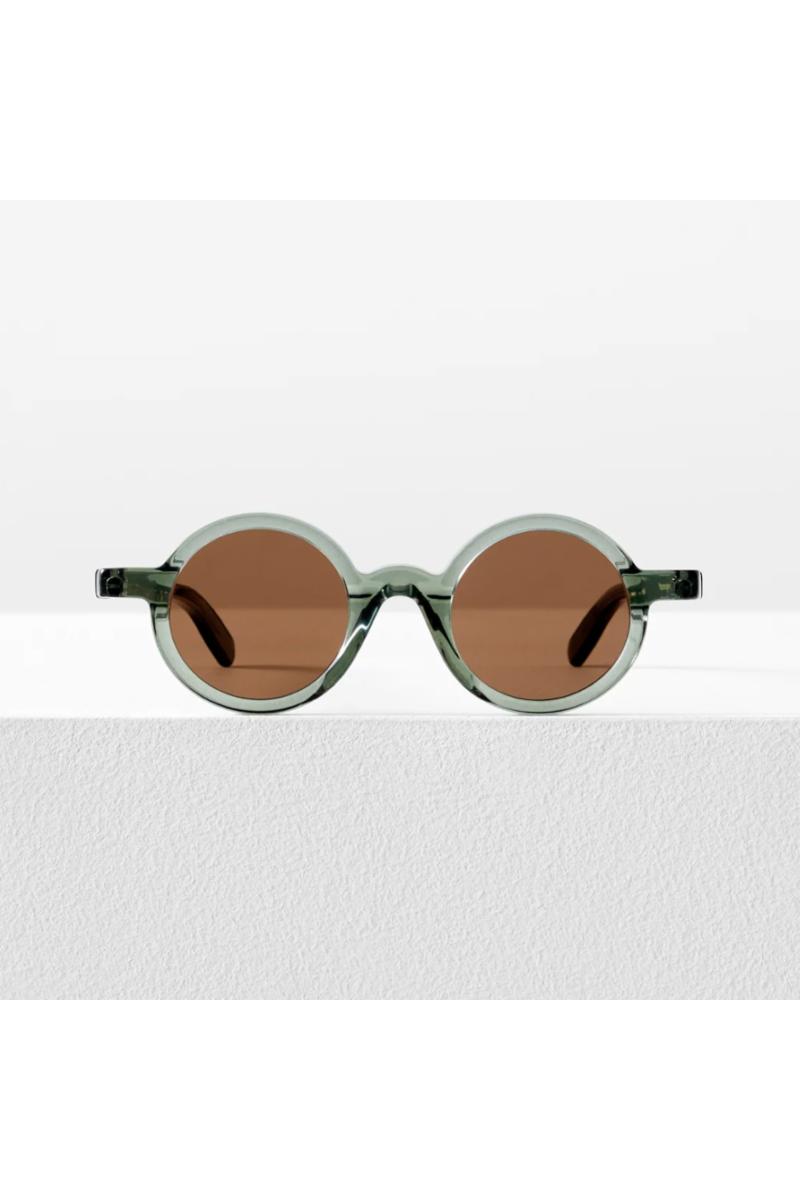 Liten, rund solbrille i organisk acetat fra Aude Herouard. Etui og microfiberklut følger med solbrillen. Håndlaget i Frankrike.