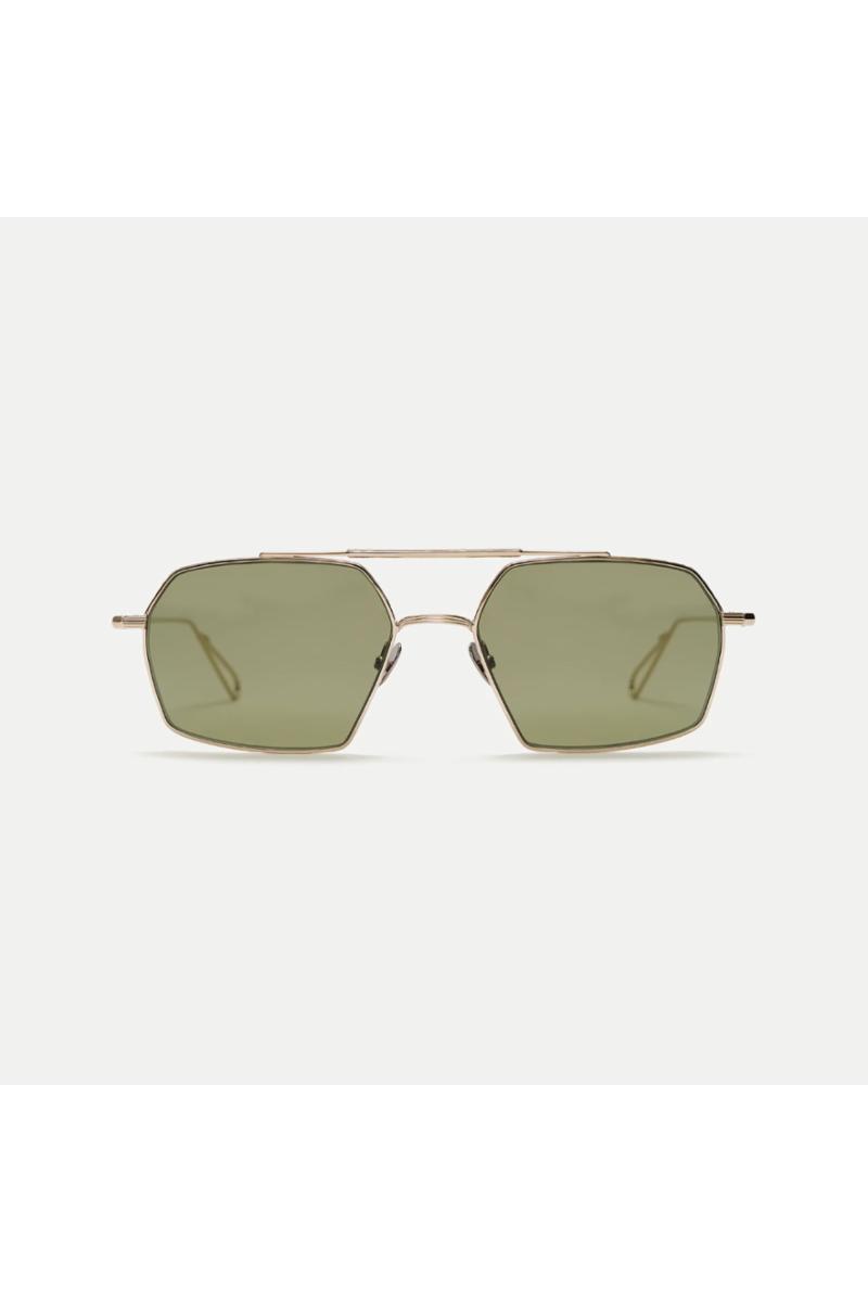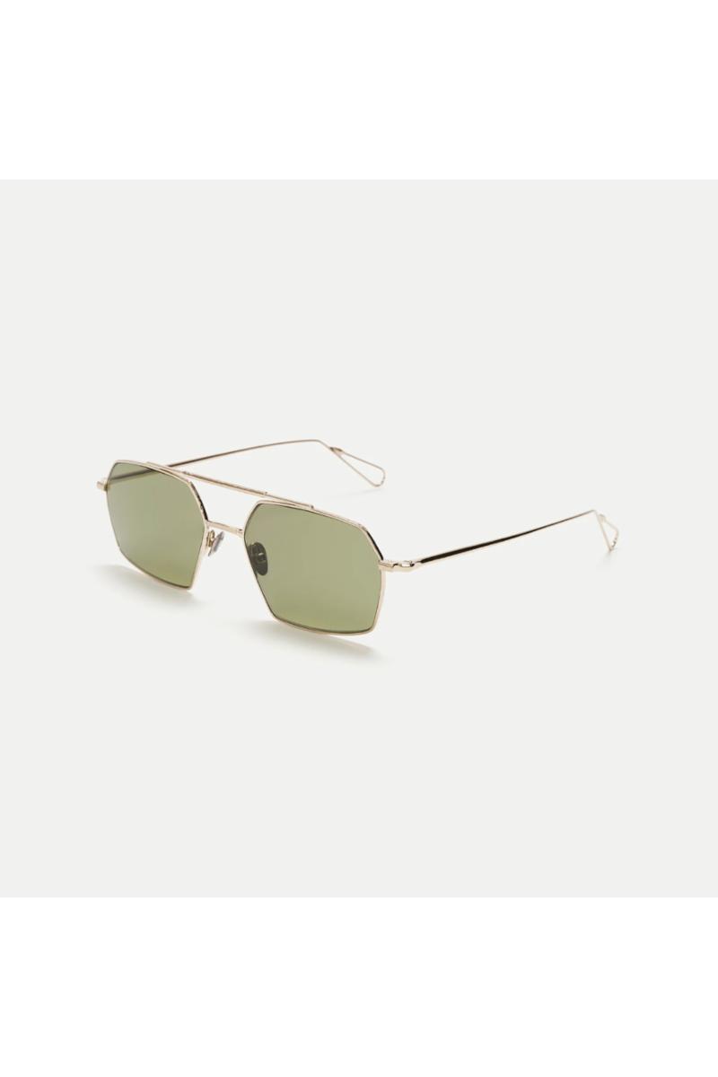 Stilren solbrille i delikat metall fra Ahlem som balanserer skarpe og myke vinkler. Håndlaget i Frankrike. Etui og microfiberklut følger med solbrillen.