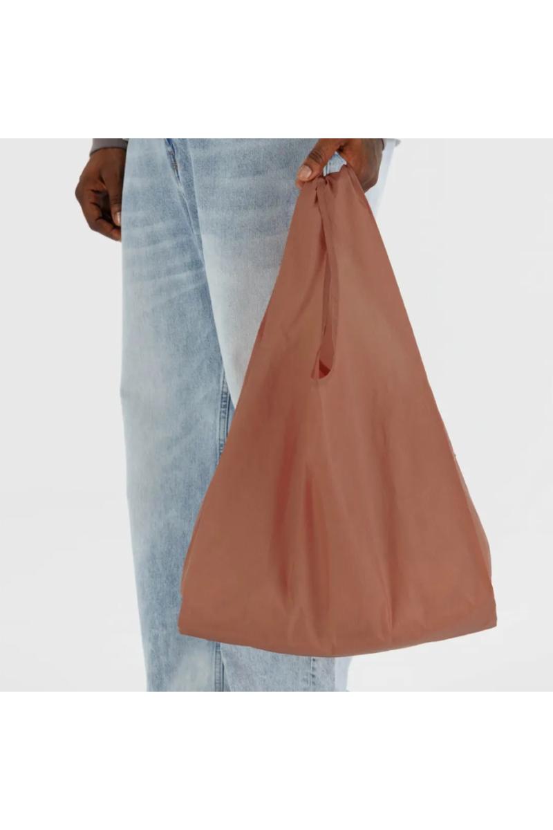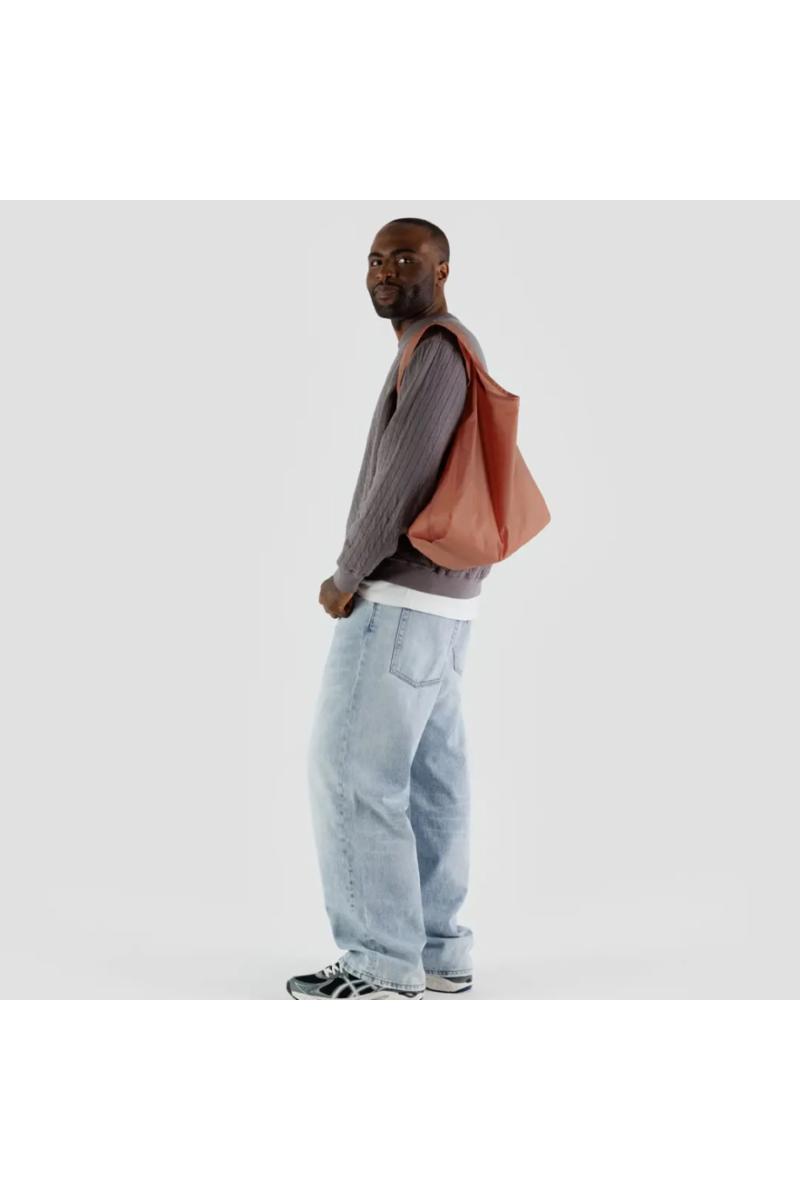 Gjenbrukbar handlepose i resirkulert nylon fra BAGGU. Basert på konstruksjonen til dagligvareposen i plast, er den slitesterk, lett og kan holde 2-3 ganger mer enn en tradisjonell dagligvarepose. Tåler opptil omtrent 20 kg.