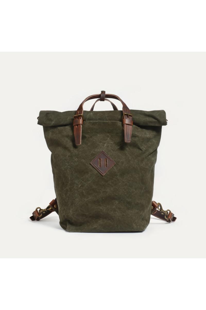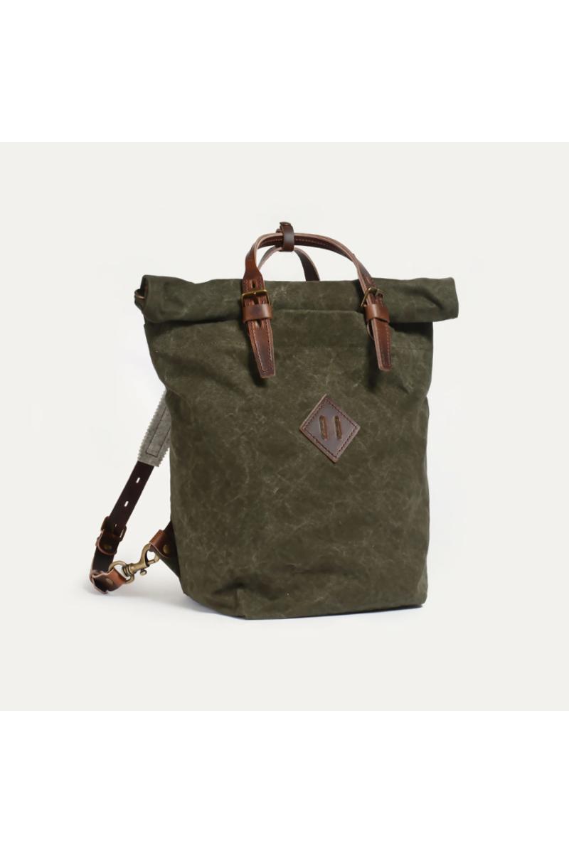 Ryggsekk i bomullscanvas med detaljer i brunt vegetabilsk garvet skinn. Justerbare filtfôrede ryggstropper for komfort. Sekken har en utvendig glidelåslomme på baksiden, en lapplomme foran, en rygglomme med magnetisk lukking og en innvendig avtagbar glidelåslomme i bomullscanvas. Plass til laptop. Sekken er håndlaget fra start til slutt av samme håndverker som daterer og signerer produktet. Laget i Frankrike.