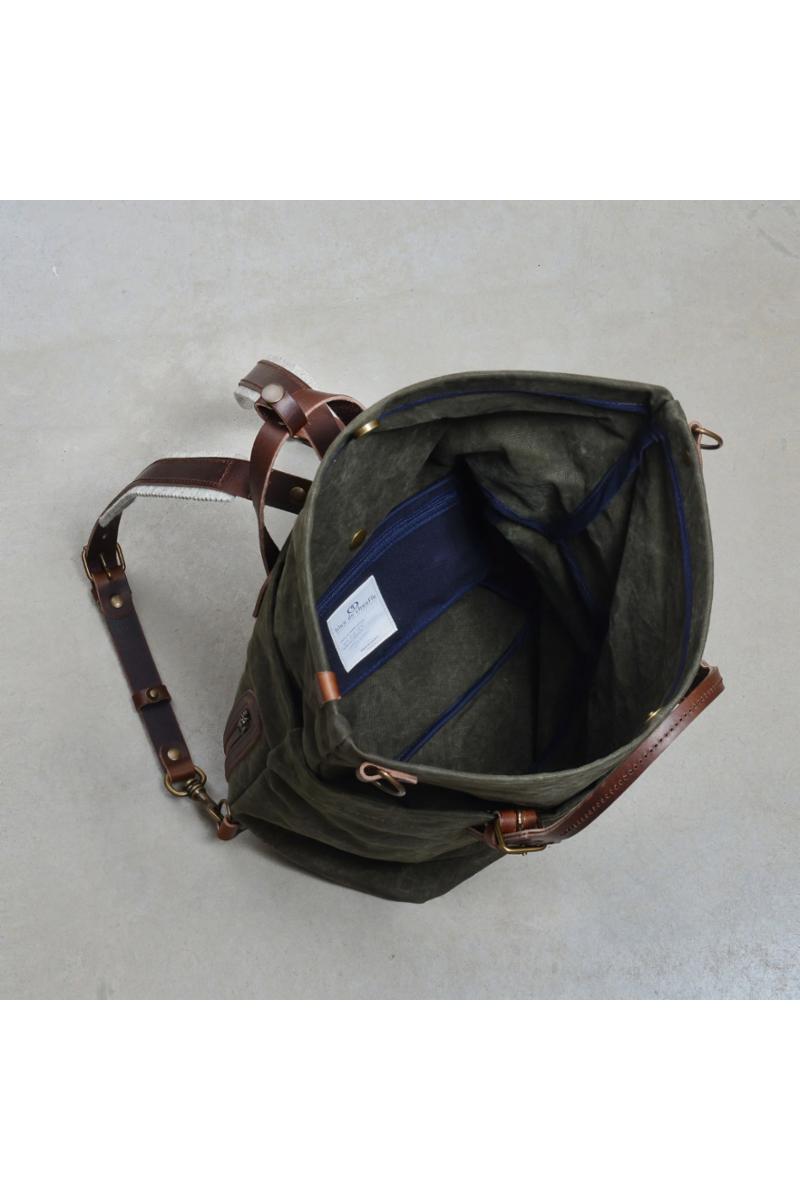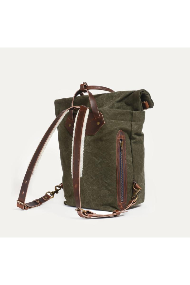 - Materiale: Bommullscanvas og vegetabilsk garvet skinn. Sekken er vannavstøtende.