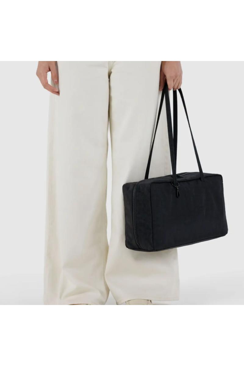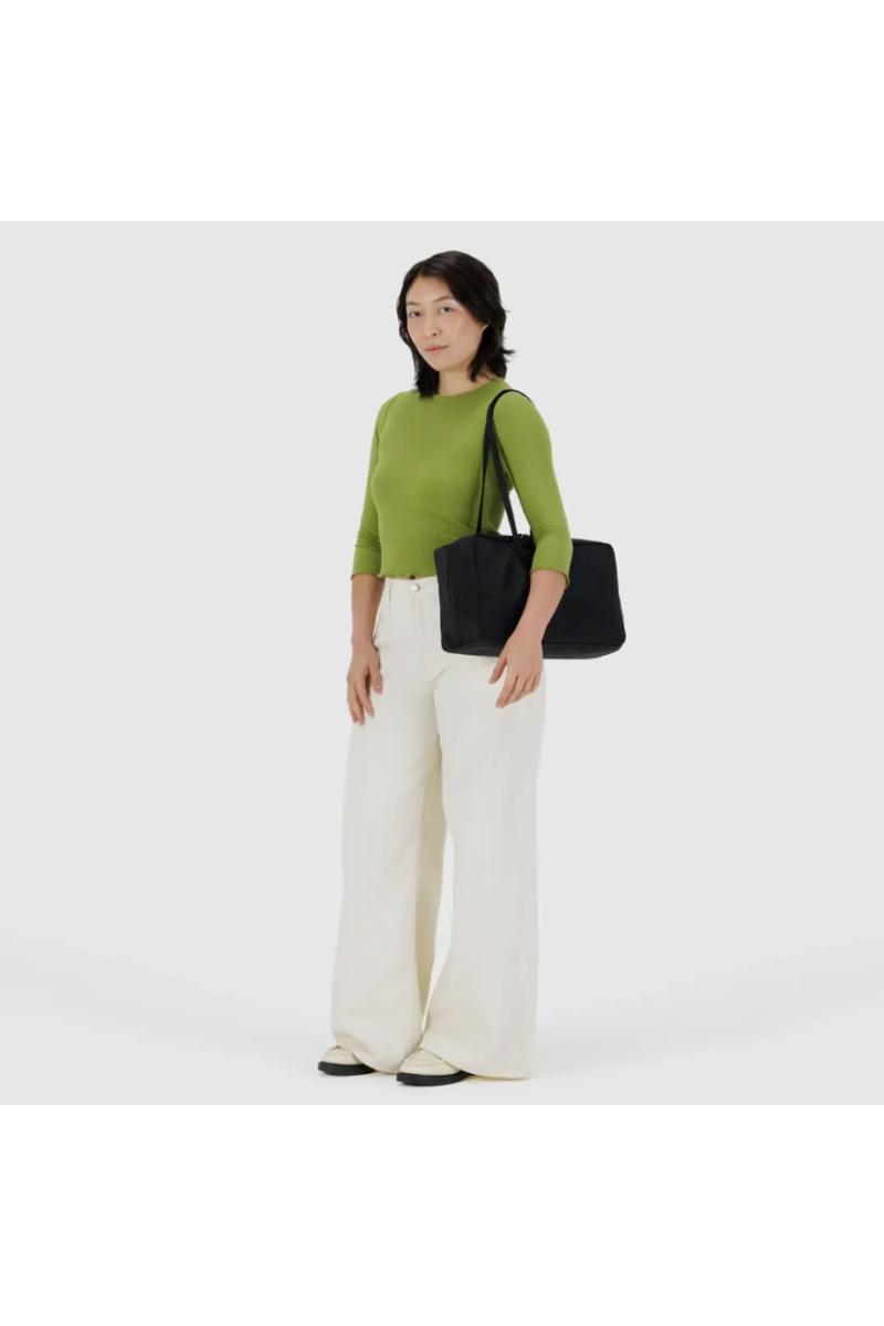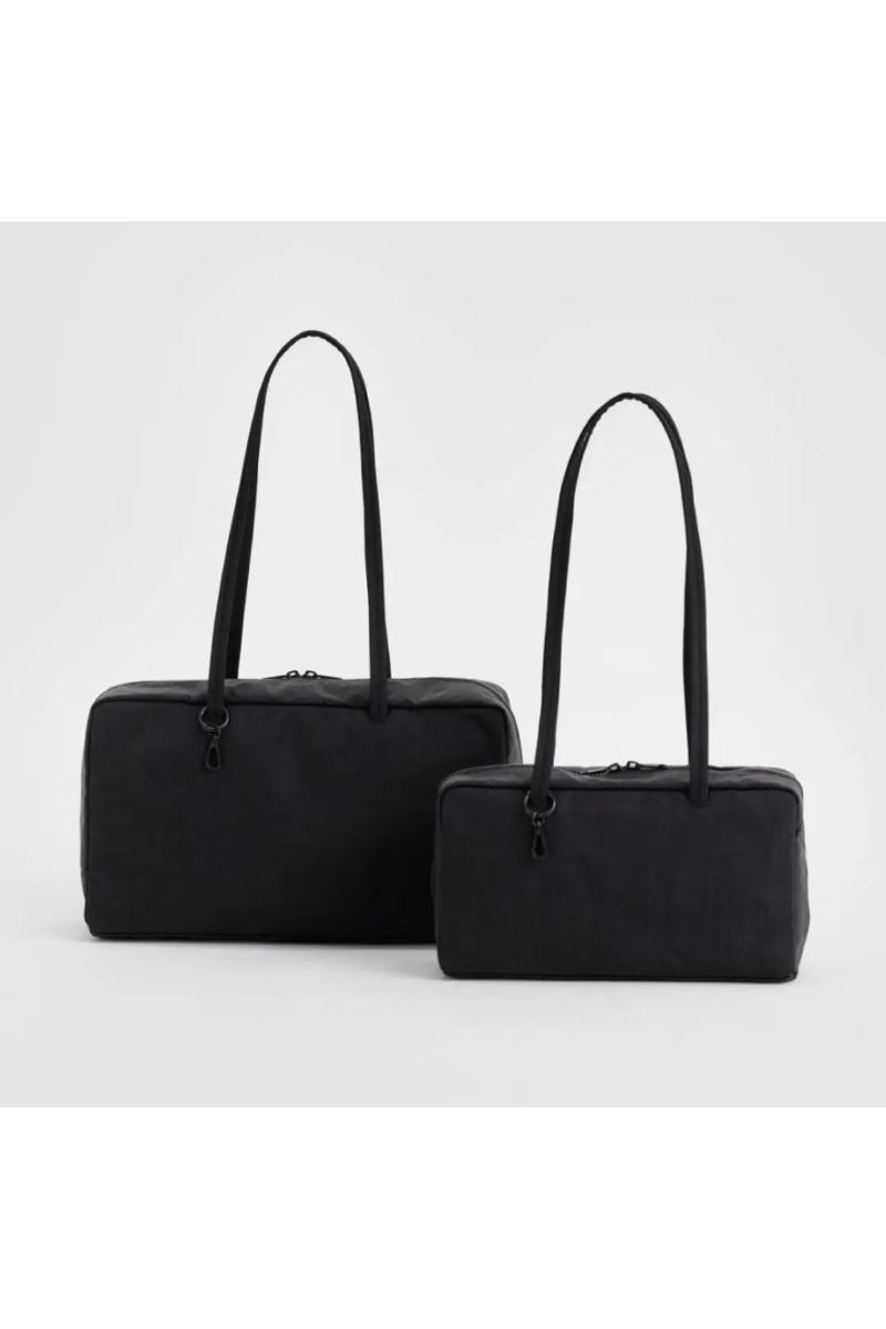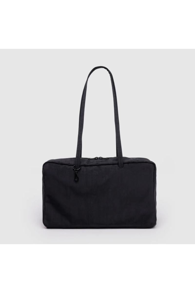 Romslig bowler-veske i resirkulert nylon fra BAGGU, med lange skulderstropper og en praktisk klipsring som gjør det lett å pynte vesken med ønskelige bag-charms. Innvendig har vesken en glidelåslomme og nøkkelsnor som holder alle verdisakene på plass.