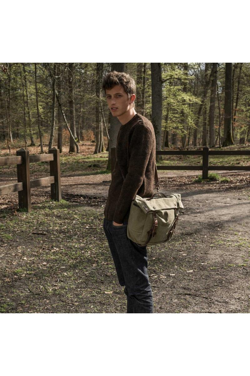 Gaston Tool Bag er en superfin hverdags- og arbeidsveske, med plass til det meste av bøker, mapper og en laptop opp til 15’’. Vesken er lagd av bomullscanvas og vegetabilsk garvet skinn. Den har et hovedrom, to små lommer på hver sin side og en lomme på baksiden med magnetlukking. Innvendig har vesken en liten lomme med glidelås-lukking. Det følger med en lang skulderstropp til bæring over skulderen. Håndlaget i Frankrike.