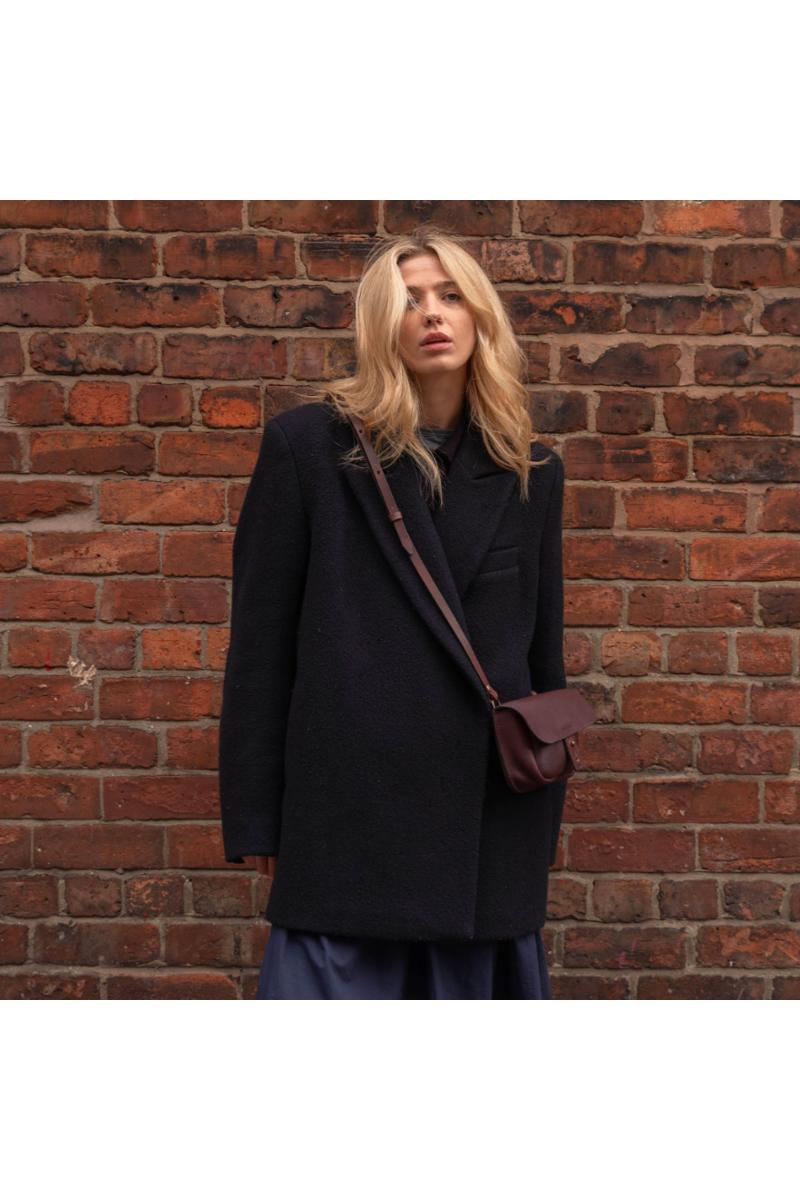 En tøff, men samtidig elegant skulderveske laget i vegetabilsk garvet skinn fra Bleu De Chauffe. Vesken har et hovedrom innvendig, samt en liten lomme med plass til bankkort, pass eller en liten notatbok. Skulderremmen kan justeres. Håndlaget i Frankrike.
