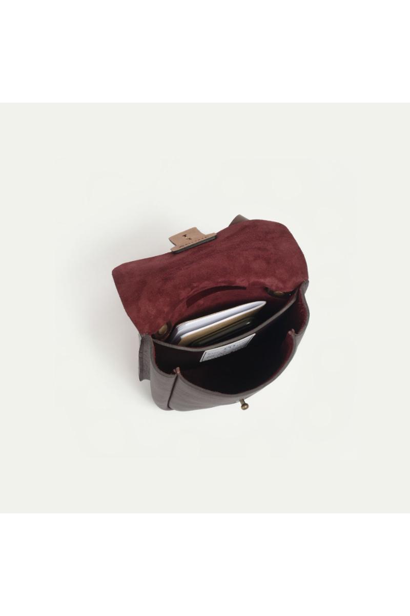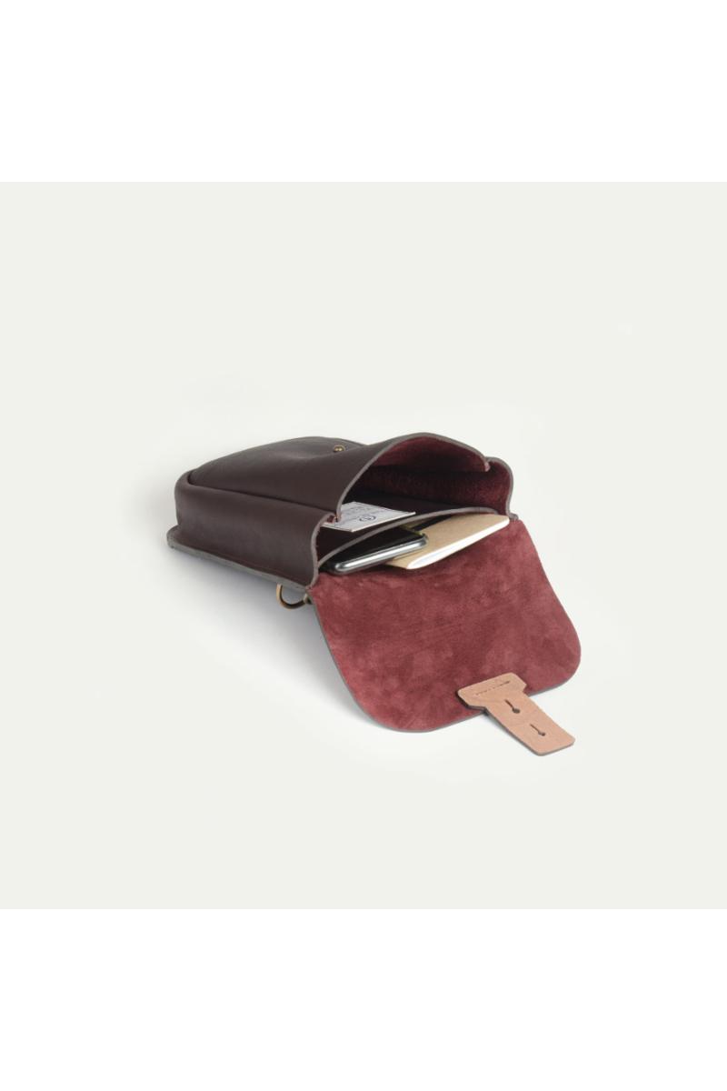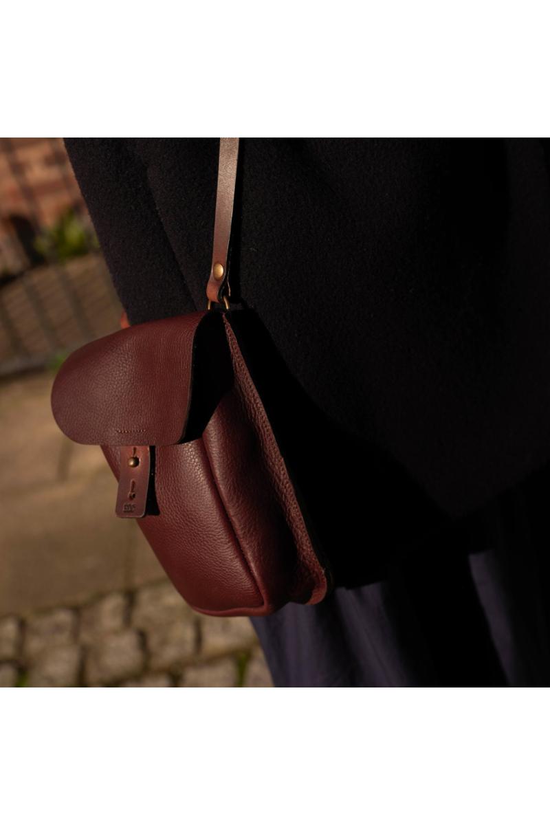 Kompakt, praktisk skulderveske laget i vegetabilsk garvet skinn fra Bleu De Chauffe. Vesken har et hovedrom innvendig, samt en ekstra lomme med plass til andre verdisaker. Skulderremmen kan justeres. Håndlaget i Frankrike.