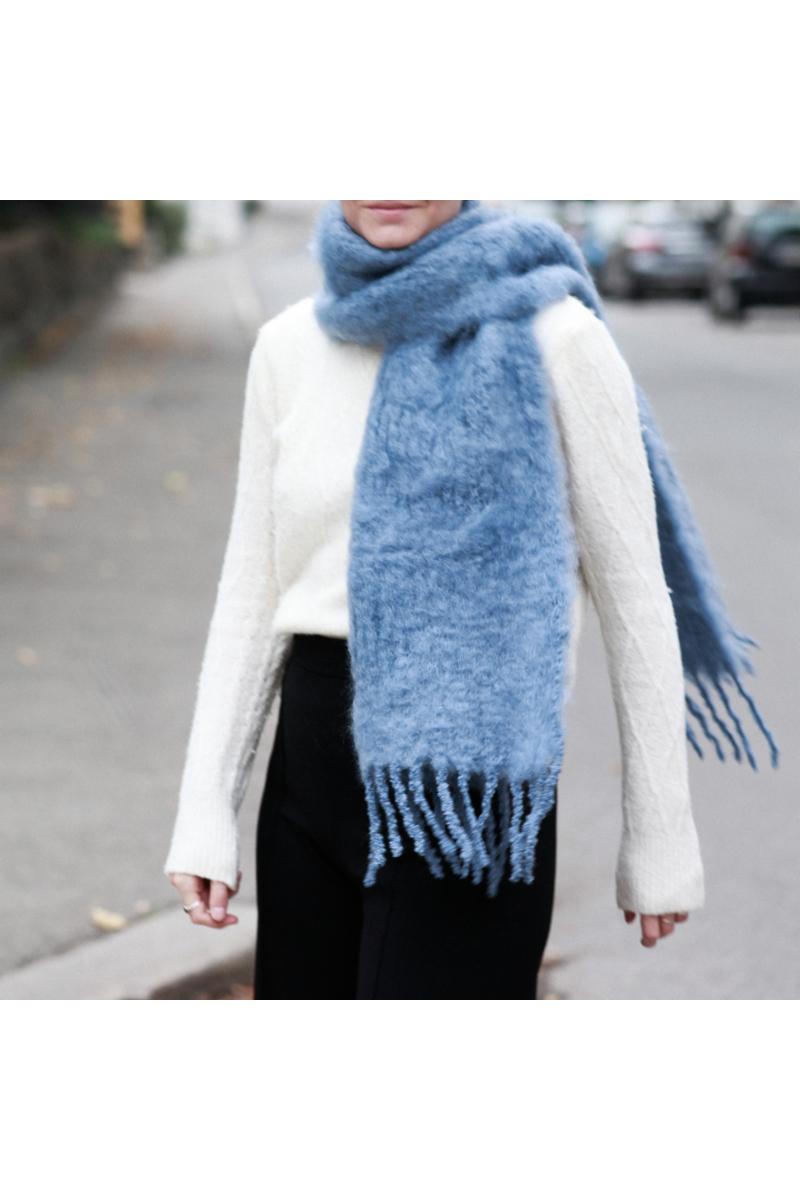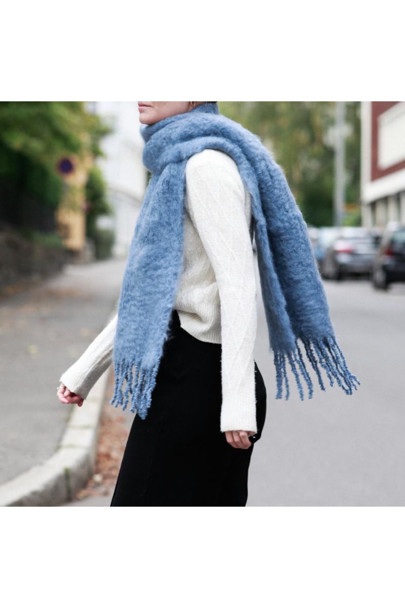 - Pleie & vedlikehold: Håndvask i kaldt vann, tørk flatt. Ikke stryk. Børst når skjerfet er tørt. Rens via renseri anbefales.