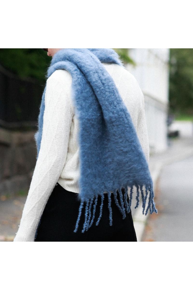 - Materiale: 78% kid mohair, 13% wool, 9% nylon binder. De håndstrikkede kid mohair-skjerfene er laget av den første ullen angorageiten produserer, noe som gir produktet en fantastisk mykhet. En geit vokser denne typen ull bare én gang, og materialet er derfor unikt.