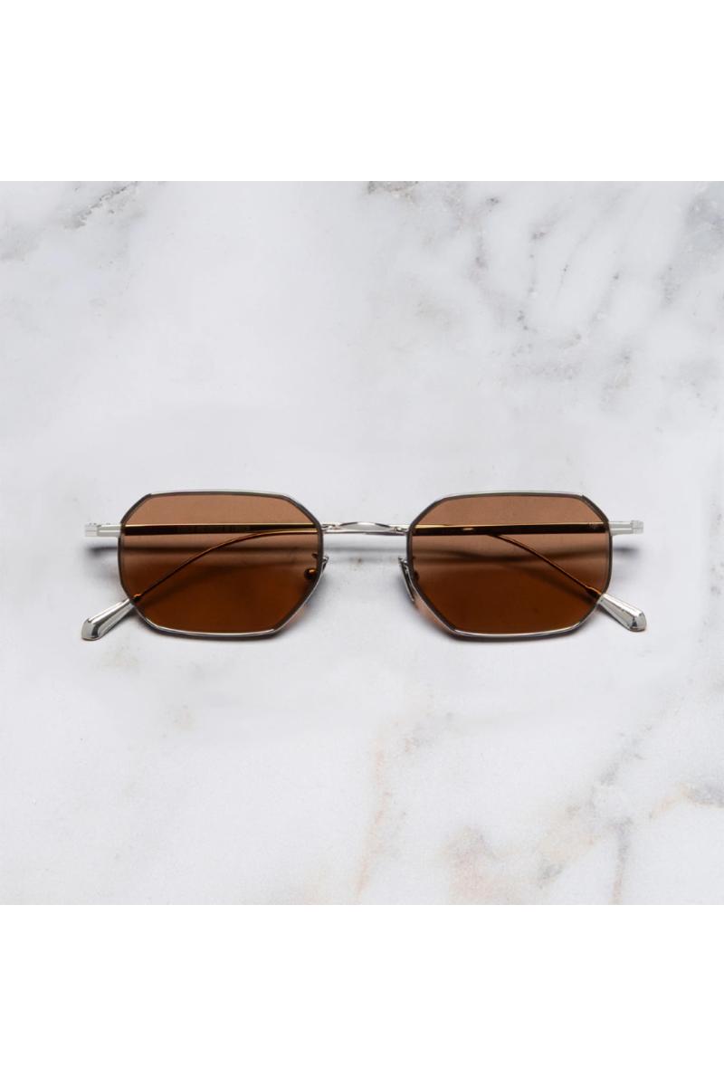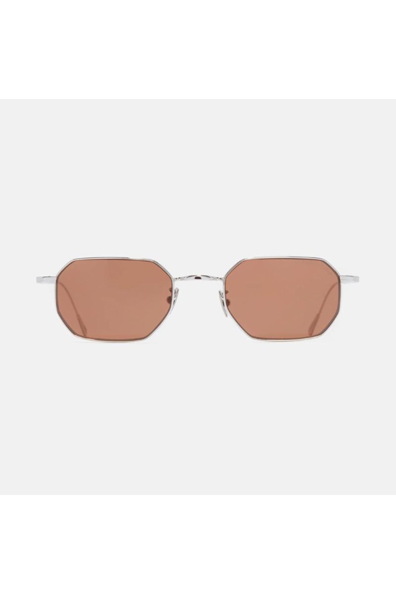 Sekskanted solbrille i metall med avrundede kanter fra Cutler and Gross. De har en slank profil med en dobbeltbuet nesebro, håndlaget av ultralette edle metaller. Etui og mikrofiberklut følger med solbrillen.