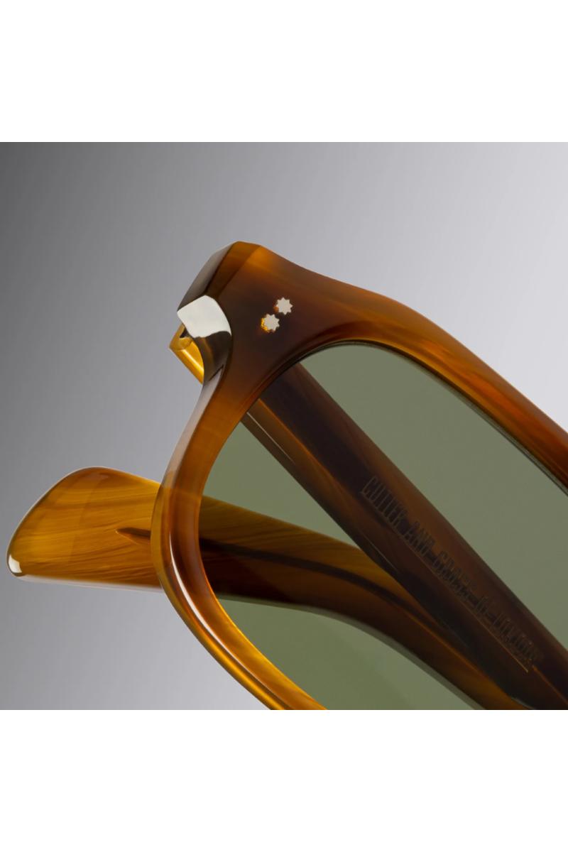 Solbrille fra Cutler & Gross med pilot-form. Den utsøkte silhuetten er håndlaget i Italia av 8 mm acetat, og har signatur 3D-fresing og -fasing for å gi letthet og komfort når den brukes gjennom dagen. Etui og mikrofiberklut følger med solbrillen.