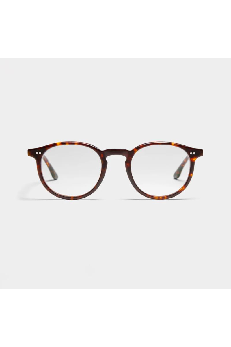 Rund brilleinnfatning i slank acetat fra Peter and May. Etui og mikrofiberklut følger med brillene.
