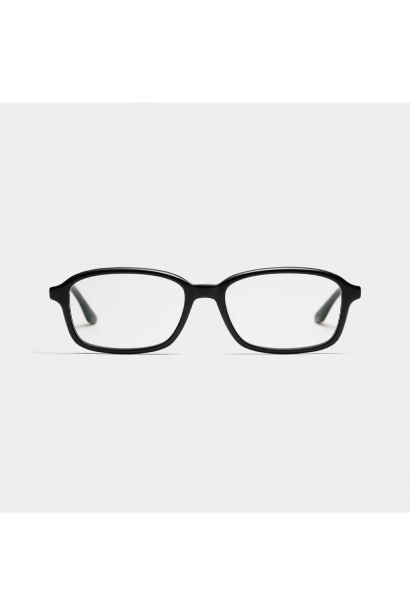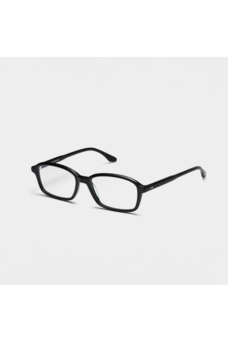 Rektangulær brilleinnfatning i slank acetat fra Peter & May. Etui og microfiberklut følger med brillene.