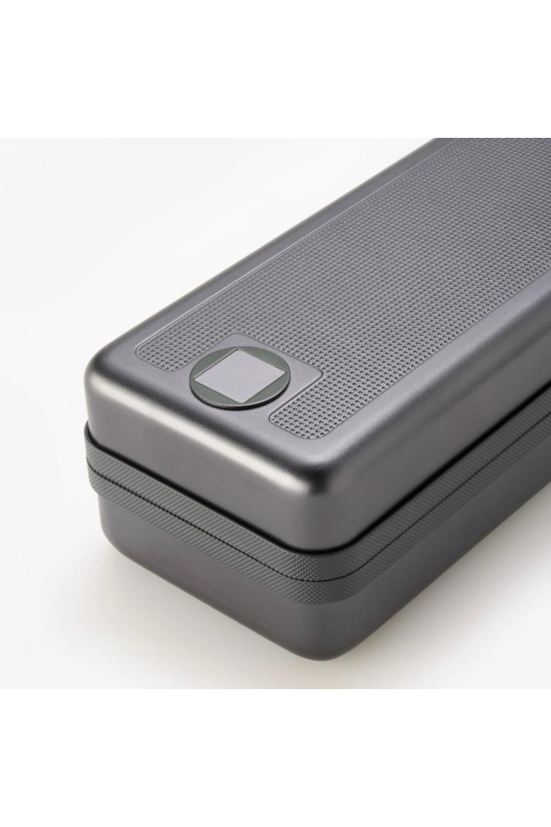 Brillene blir levert med et etui i aluminium, et etui i skinn og microfiberklut.