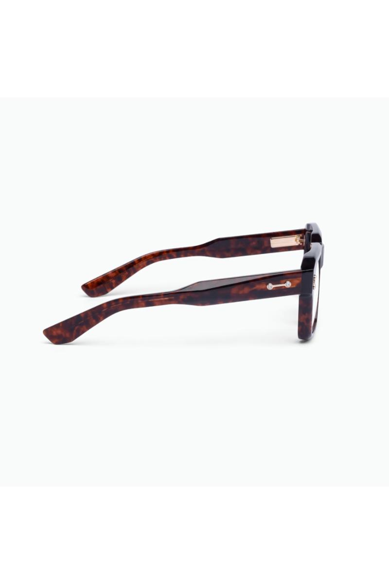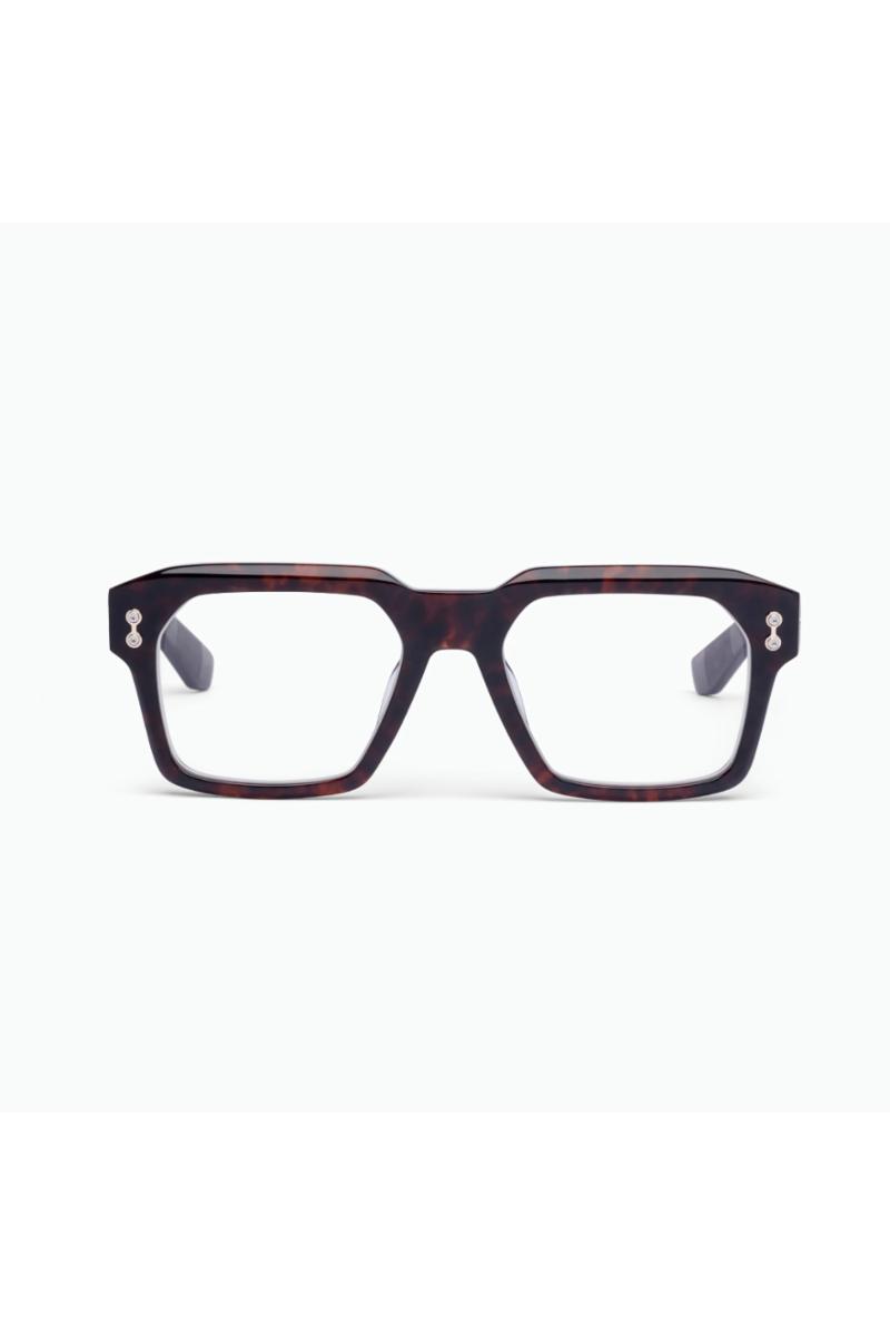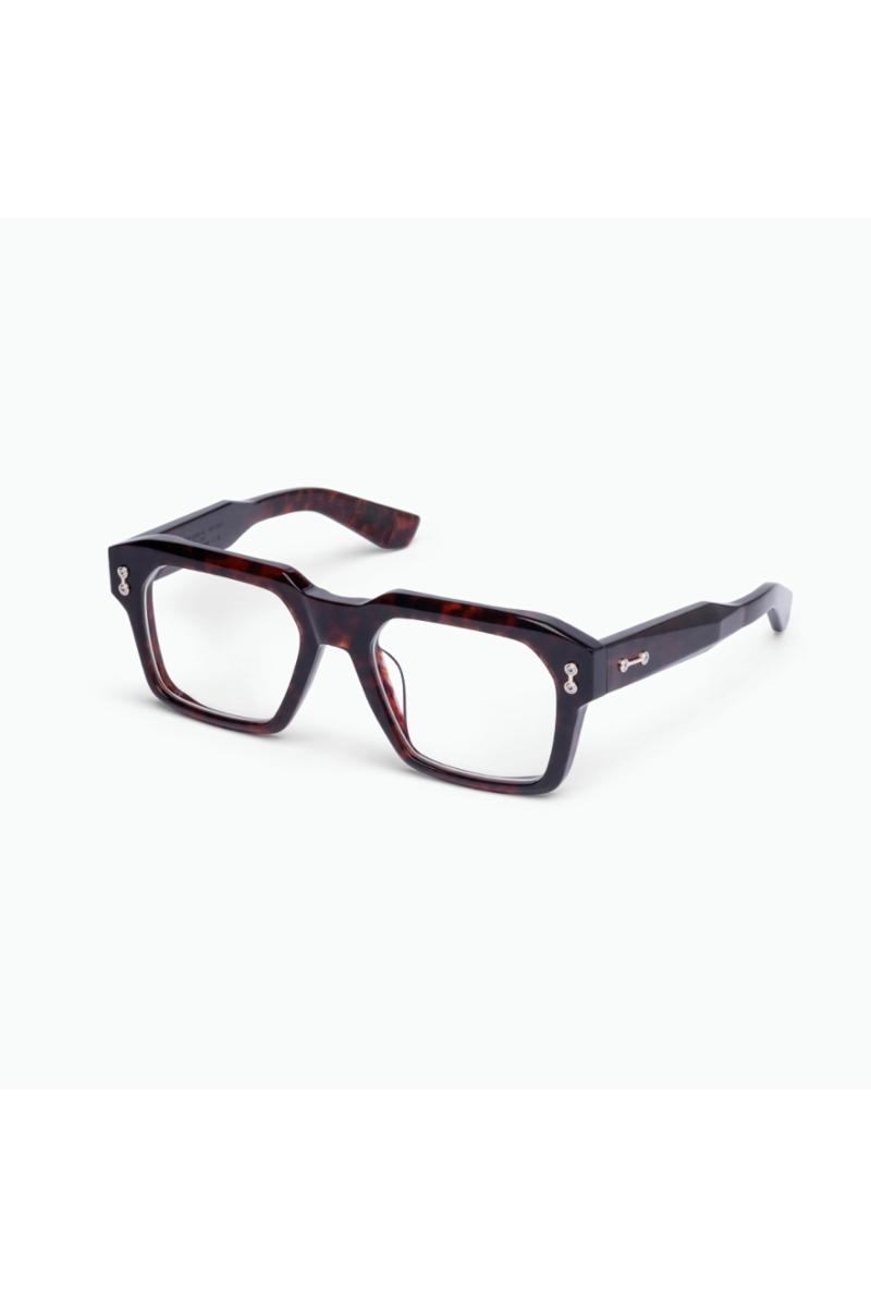 Brilleinnfatning av kraftig acetat fra Akoni som kombinerer skarpe geometrier med skulpturelle volum for en selvsikker, overdimensjonert tilstedeværelse. De rene, kantete linjene skaper en slående, definert silhuett.