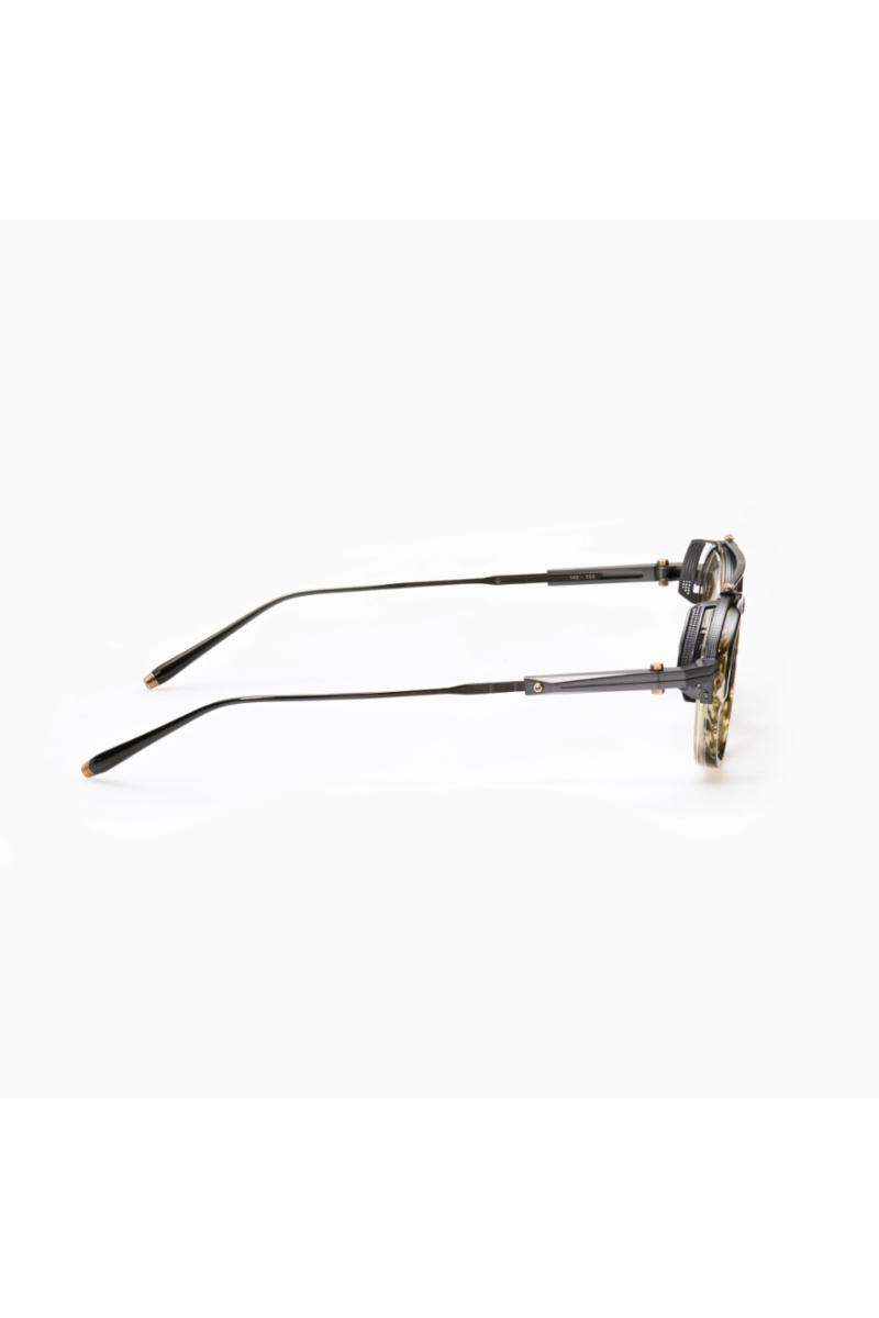 Brilleinnfatning med rund pilot-form fra Akoni. Dette slående designet har en kraftig acetatfront kombinert med en særegen kant i titan, noe som skaper et sofistikert samspill av materialer. Infinity, karakterisert av sine geometriske prikkmønstre, utforsker tredimensjonaliteten i formen, med titan-sideskjold som introduserer en følelse av dybde og romlig intrige. Justerbare stenger løfter designet ytterligere, og tilbyr en skreddersydd passform.