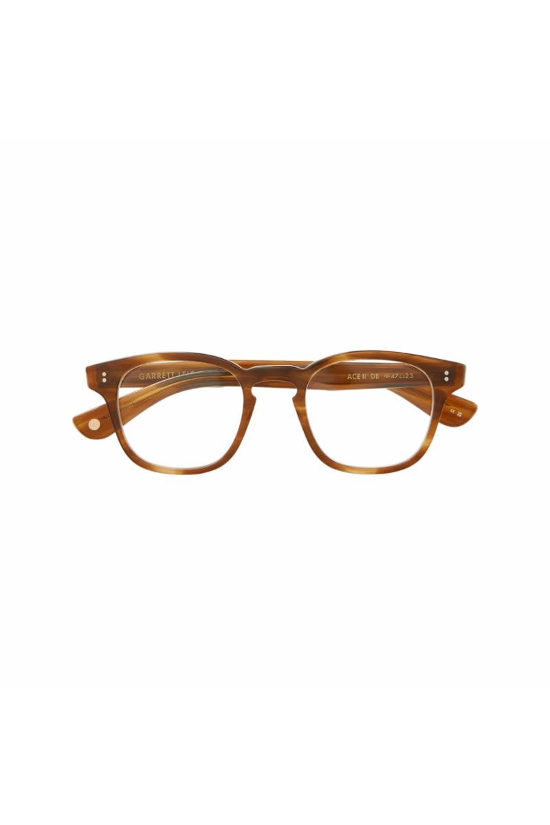 Firkantet brilleinnfatning med avrundede kanter fra Garrett Leight. Etui og mikrofiberklut følger med brillene.