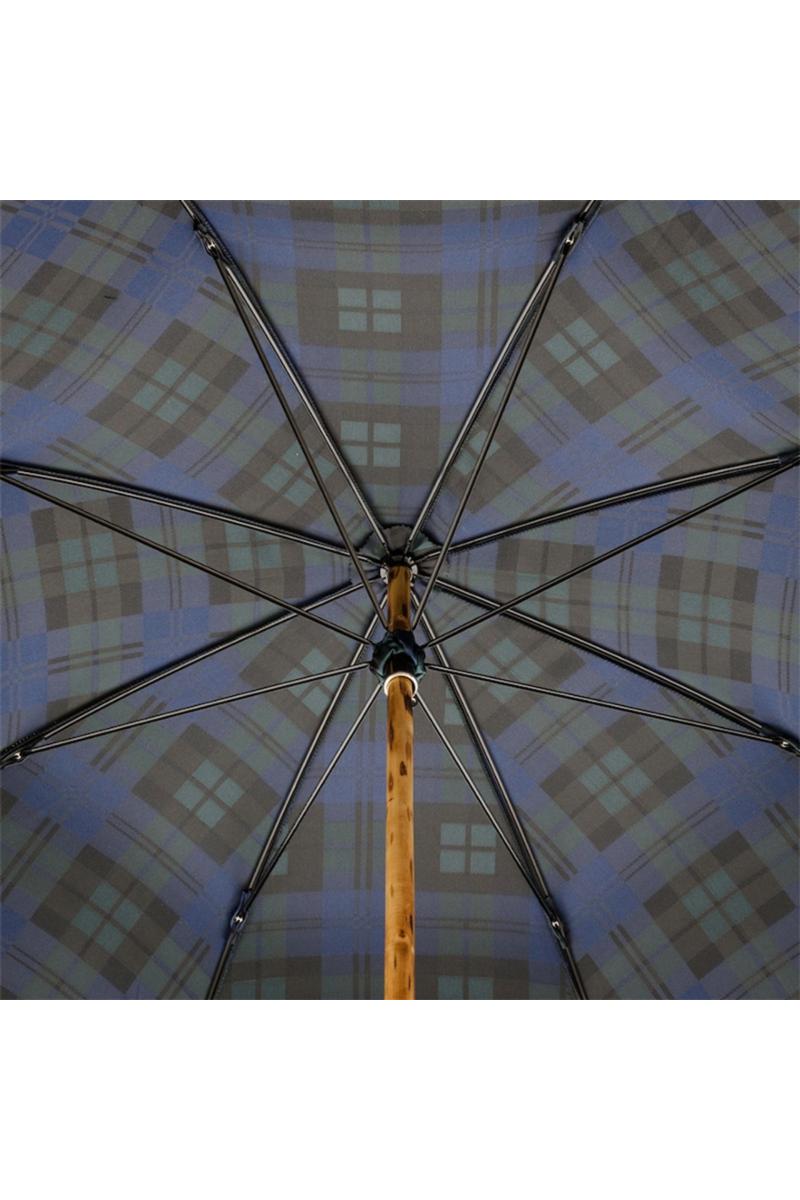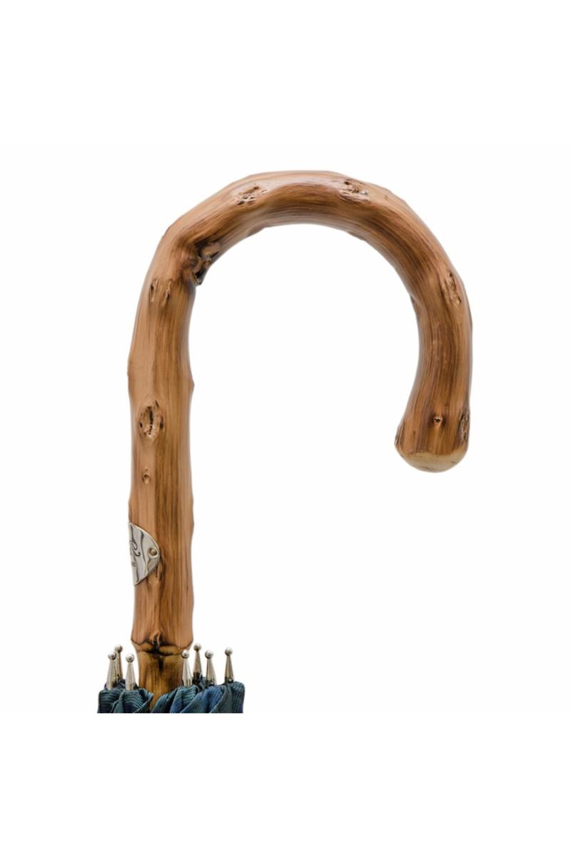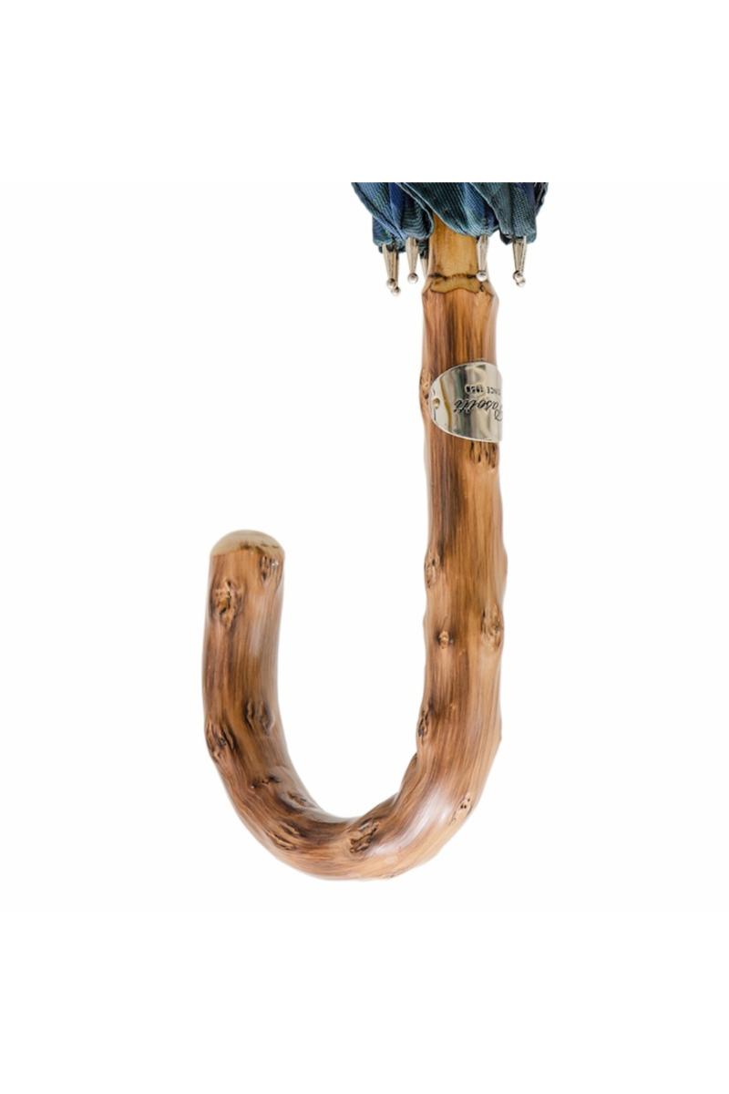Pasotti Ombrelli Blue Check Umbrella with Wooden Handle