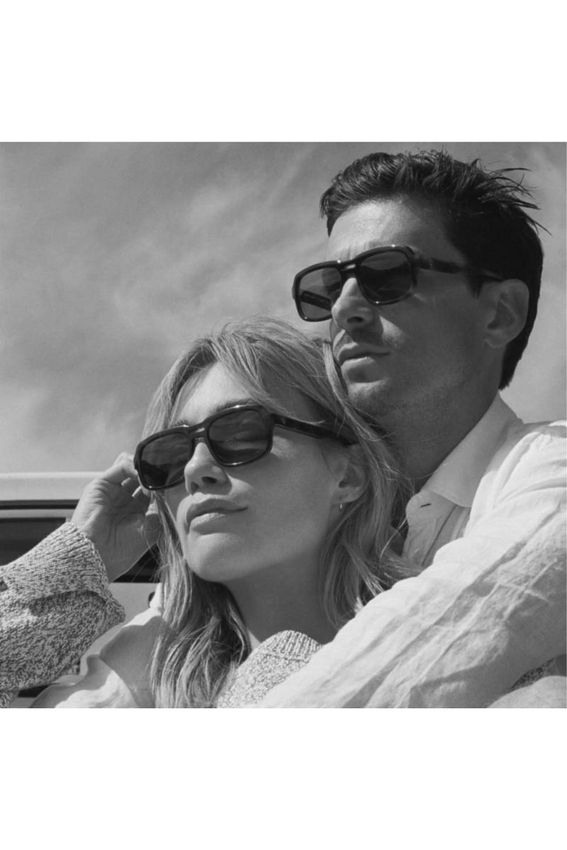 Solbrille med pilot-form fra Garrett Leight i samarbeid med Massimo Alba. Etui og mikrofiberklut fra følger med solbrillen.