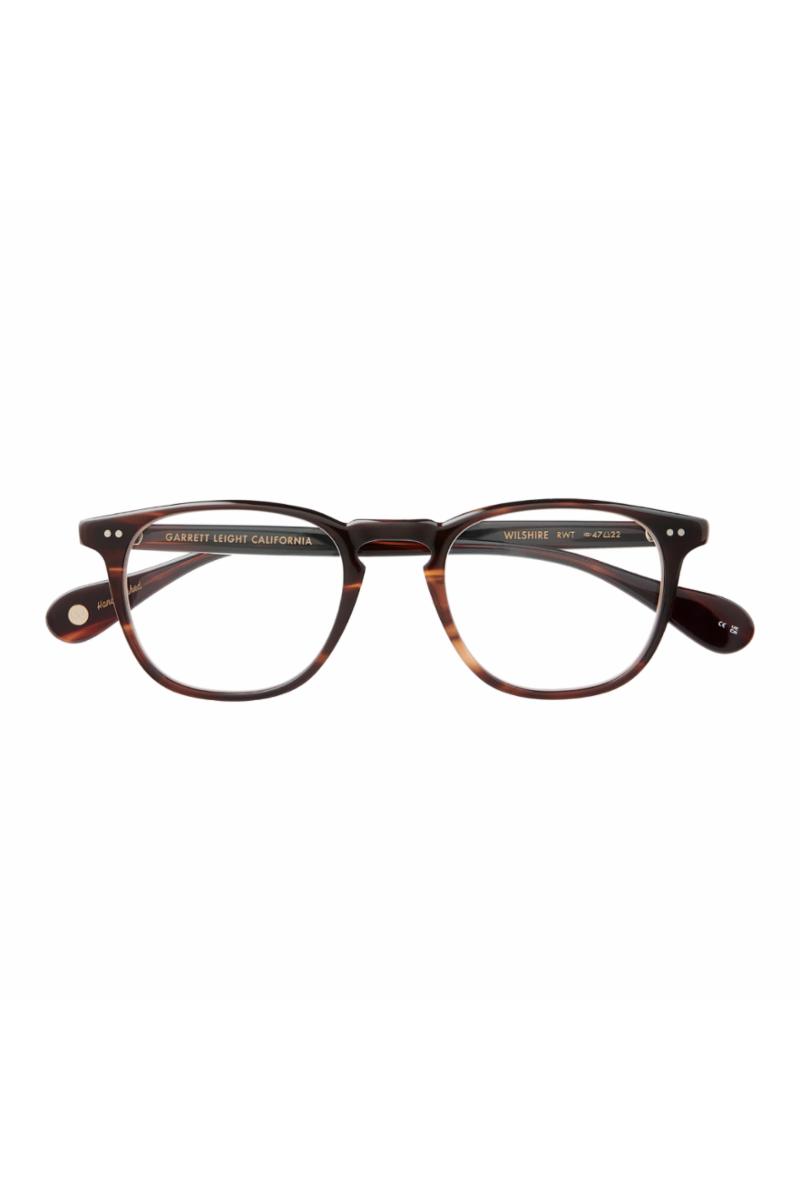 Brilleinnfatning med en myk, firkantet form fra Garrett Leight. Etui og mikrofiberklut følger med brillene.