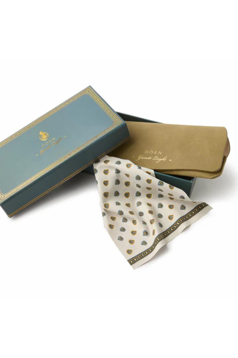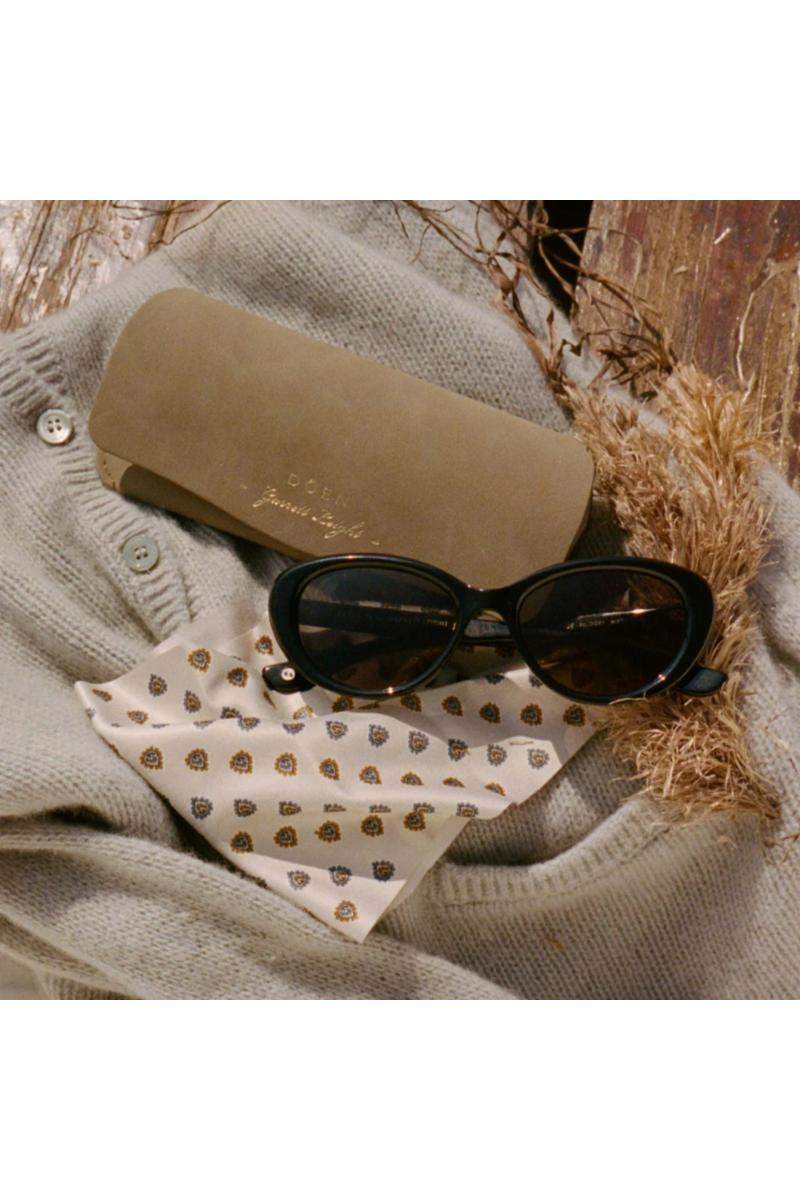 Solbrillene kommer i en spesialdesignet eske laget eksklusivt for samarbeidet. Innvendig finner du en matchende rengjøringsklut med et vintage-inspirert motiv og et skreddersydd etui designet for både beskyttelse og hverdagslig eleganse.