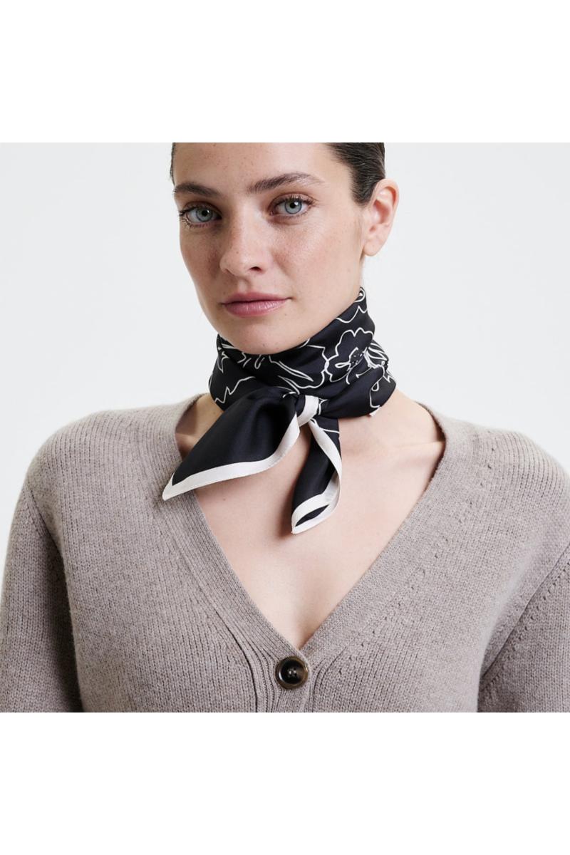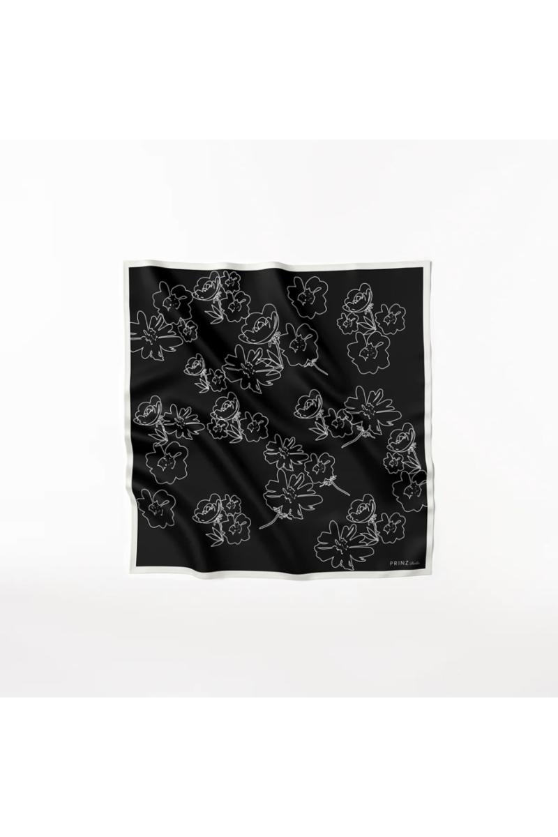 Prinz Berlin Silk Scarf Flowers 70x70 - Black