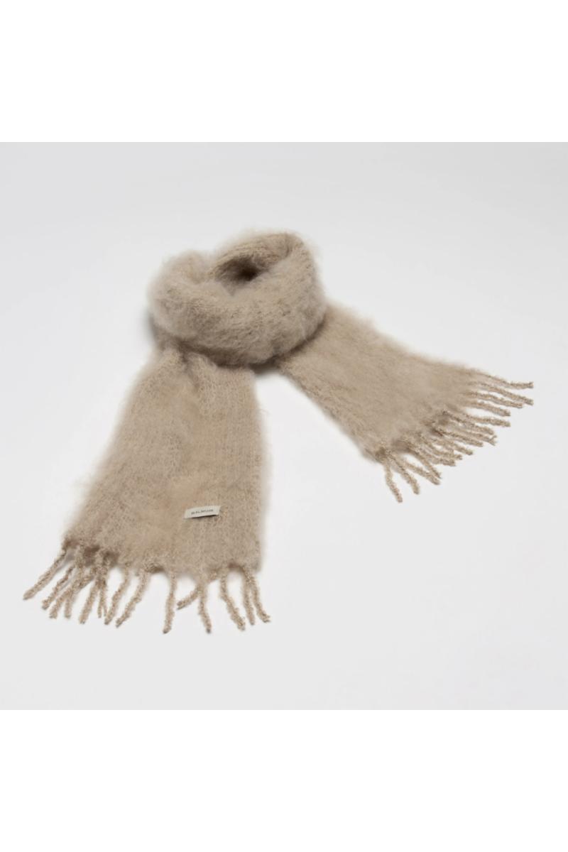 - Materiale: 78% kid mohair, 13% wool, 9% nylon binder. De håndstrikkede kid mohair-skjerfene er laget av den første ullen angorageiten produserer, noe som gir produktet en fantastisk mykhet. En geit vokser denne typen ull bare én gang, og materialet er derfor unikt.