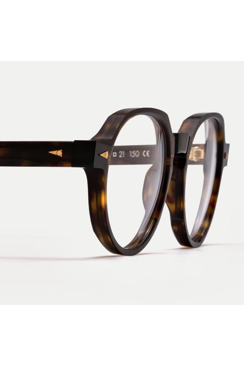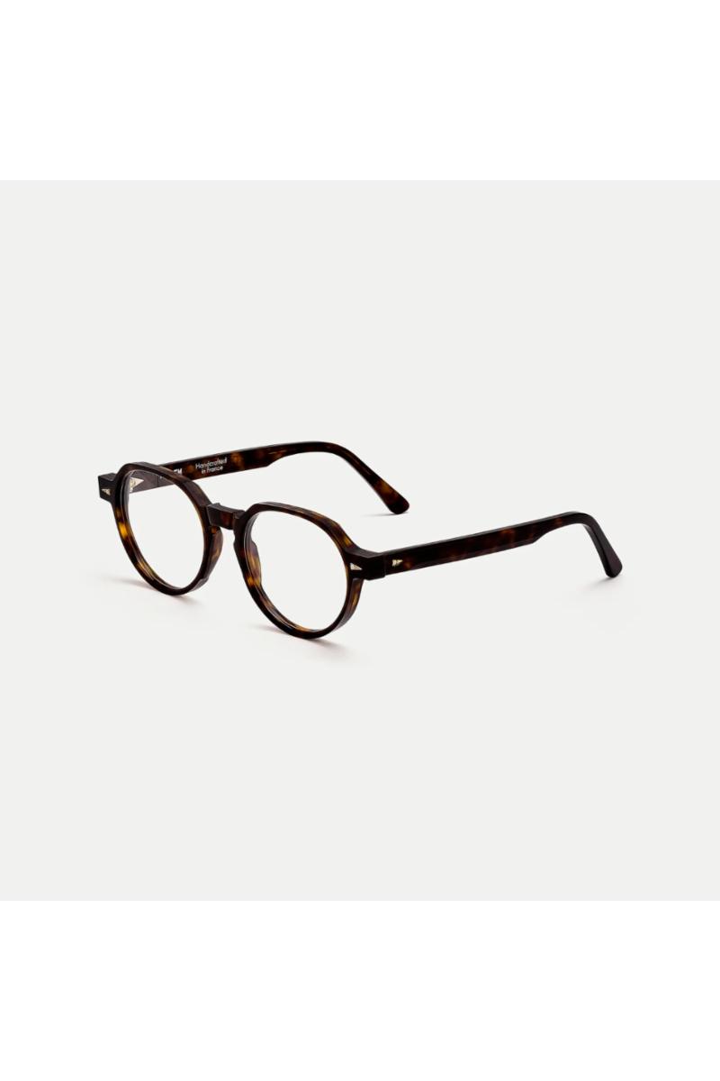 Rund brilleinnfatning i acetat fra AHLEM. Den slanke panto-formen og nøkkelhullsbroen er spesielt skreddersydd for større ansikter. Etui og microfiberklut følger med innfatningen.