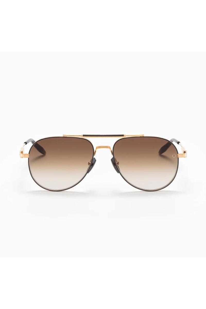 Solbrille fra Akoni med pilot-form. Elegant utformet med en tynn, svart emaljering rundt linsene for et fengslende utseende.