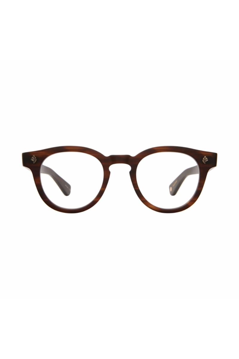Rund brilleinnfatning av kraftig acetat med nøkkelhullsbro for lett komfort. Etui og mikrofiberklut fra Garrett Leight følger med brillene.